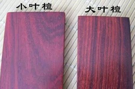 其实有一种很简单的分辨方法,只要拿木料在白纸上一划就立马见分晓了,大叶紫檀划痕紫红色,印度紫檀划痕桔红色,另小叶紫檀中还有一种小叶虎皮紫檀,即从侧面看有虎皮状横蚊,正视则不见,是为上品. 小叶檀的纹理细密有细小的牛毛纹路,而大叶的纹理粗大,有点象云彩山水纹。